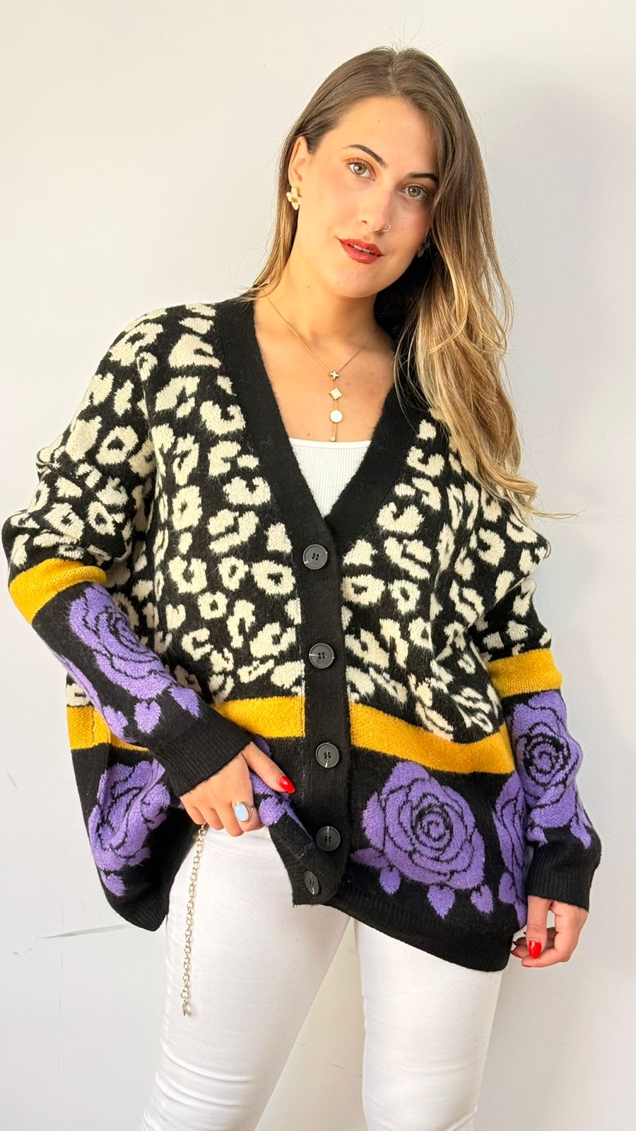 DESCRIPCION: CARDIGAN CON DISEÑO PRINT Y ROSAS, CON BOTONES..