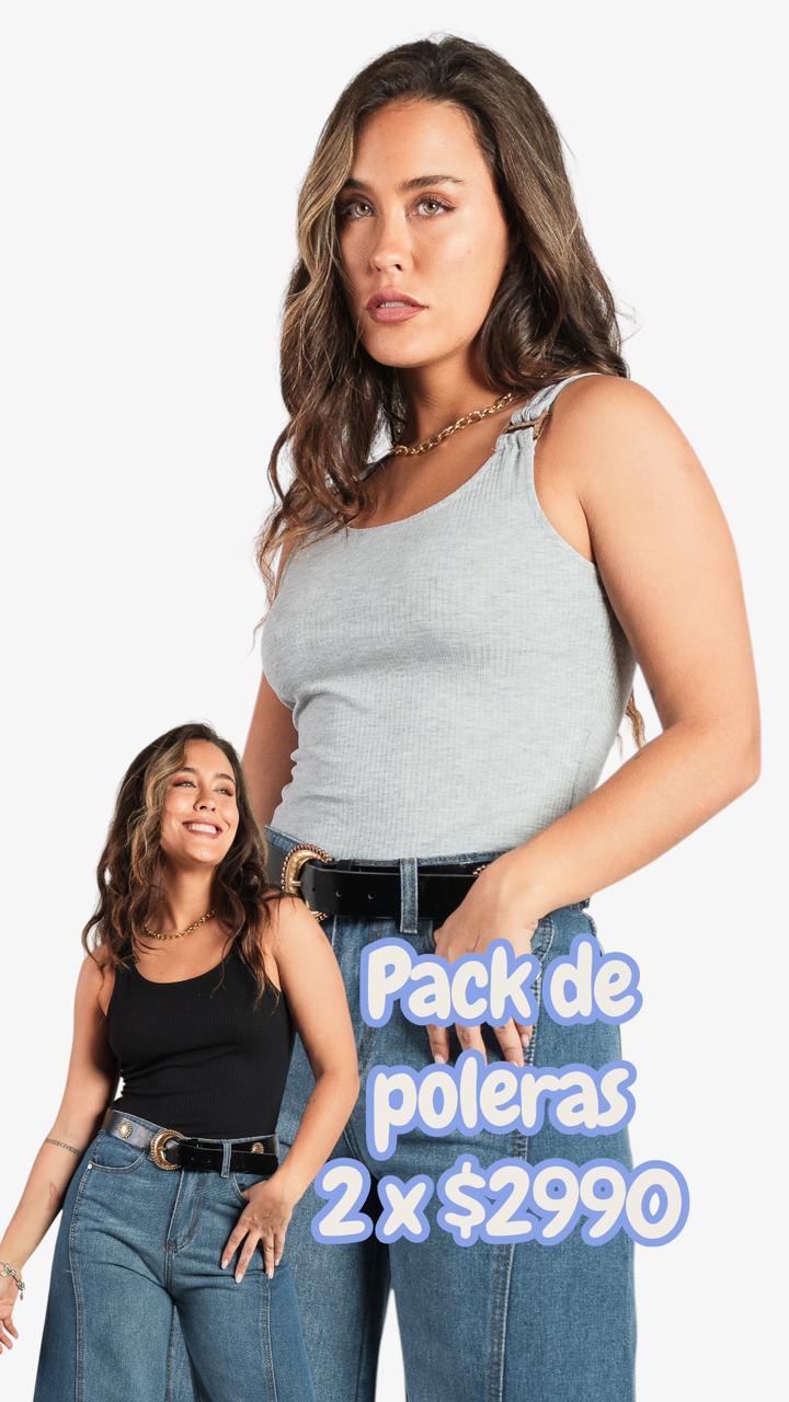 Pack de 2 bodys acanalados con detalle madera distintos colores.