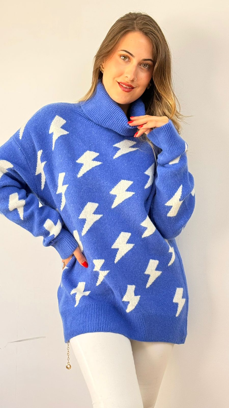DESCRIPCION: SUETER DE CUELLO ALTO CON DISELO RAYOS.