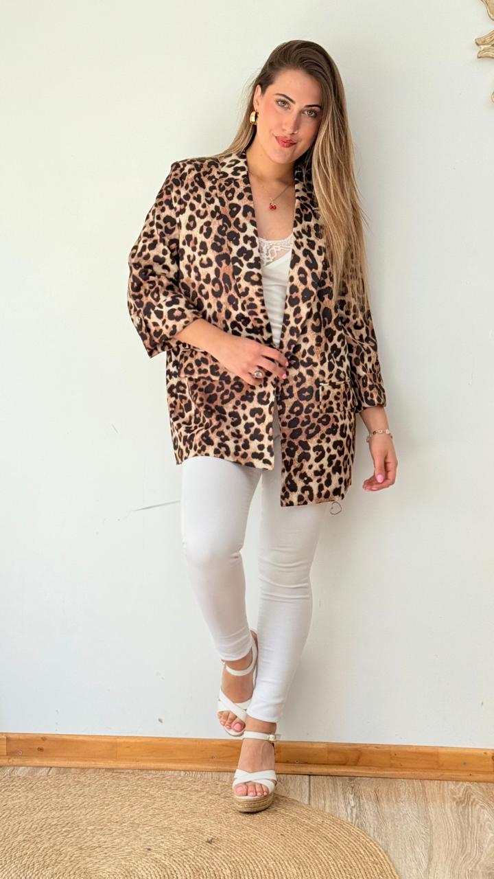 DESCRIPCION: BELLO BLAZER DISEÑO AMIMAL PRINT, CON FORRO Y BOTON EN LOS BRAZOS.