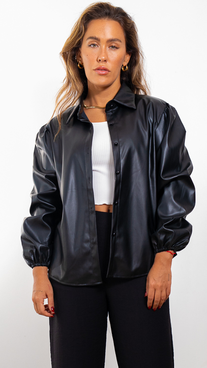 Camisa eco cuero con manga tipo globo con puños elastizados Calce cómodo y fácil de combinar.