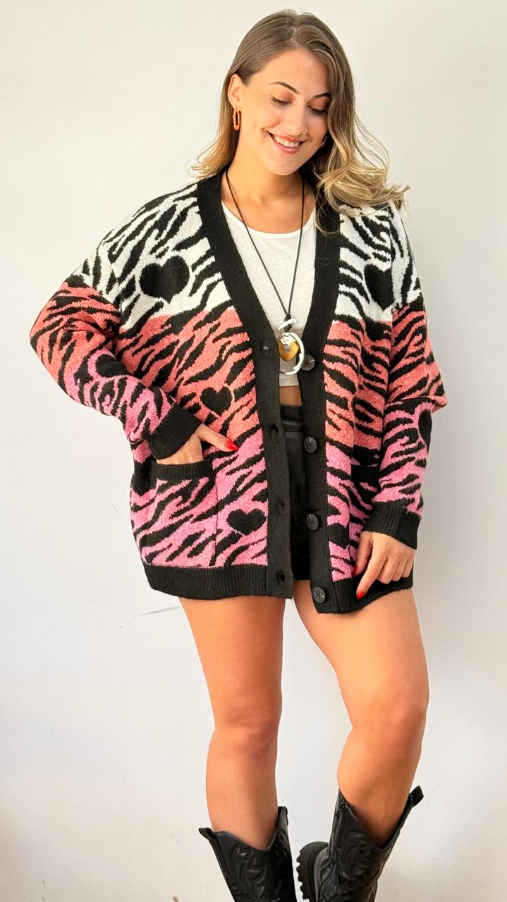 DESCRIPCION: CARDIGAN TIPO CHALECO CON BOTONES Y BOLSILLOS, LINDO DISEÑO ANIMAL CON CORAZONES.