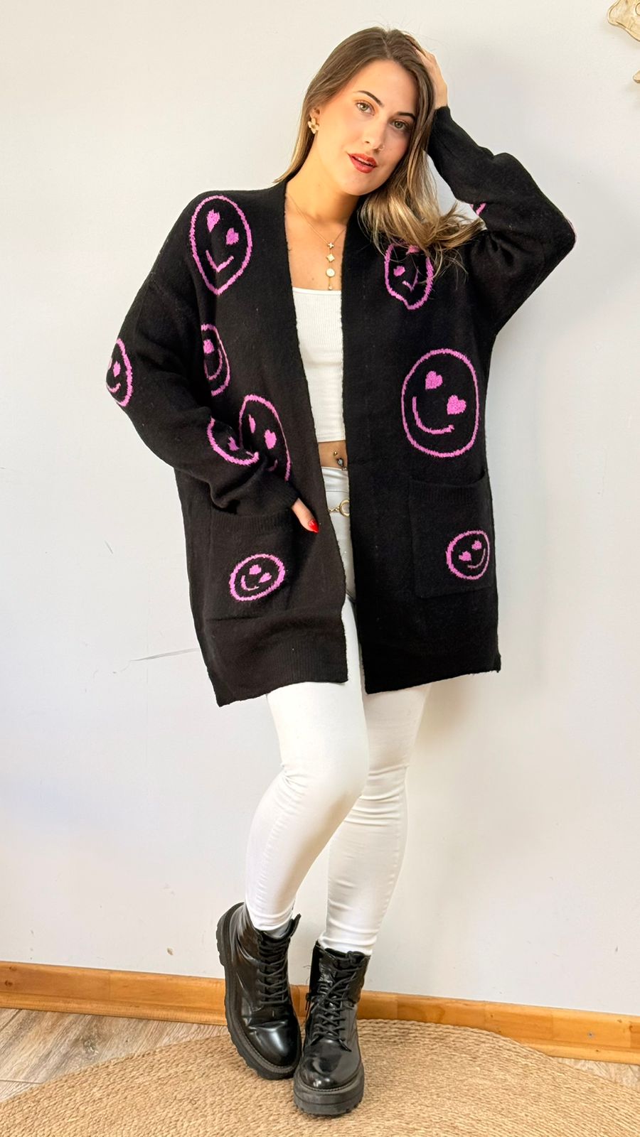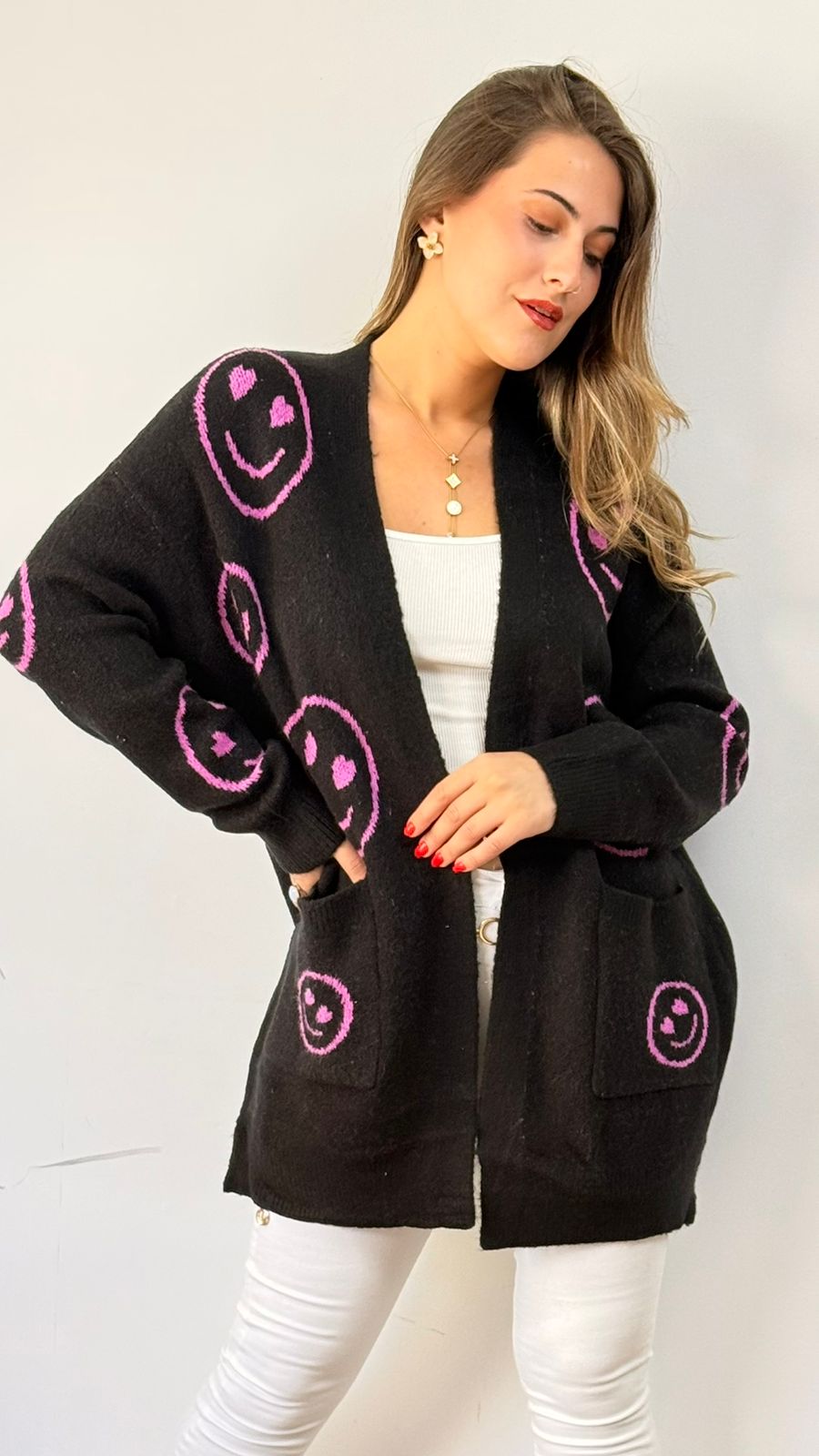 DESCRIPCION: CARDIGAN CON BOLSILLOS Y DISELOS CARITA FELIZ.
