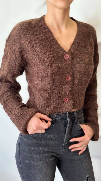 DESCRIPCION: LINDO CHALECO CORTO DE TELA TIPO LANA CON BOTONES.