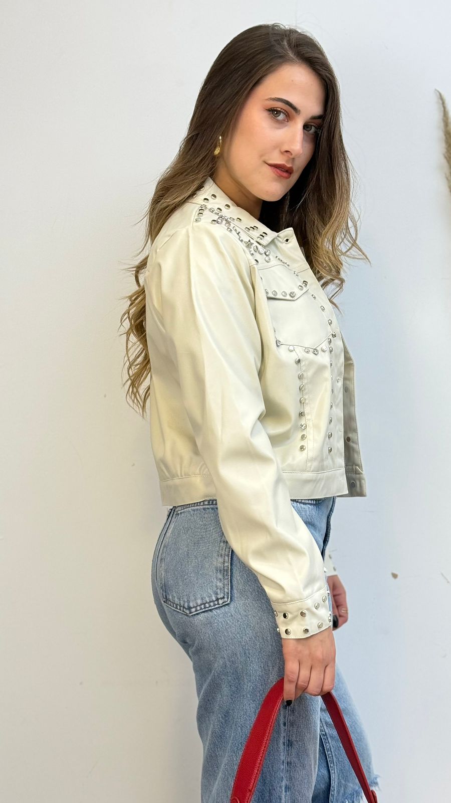 Chaqueta de eco cuero con tachas decorativas.