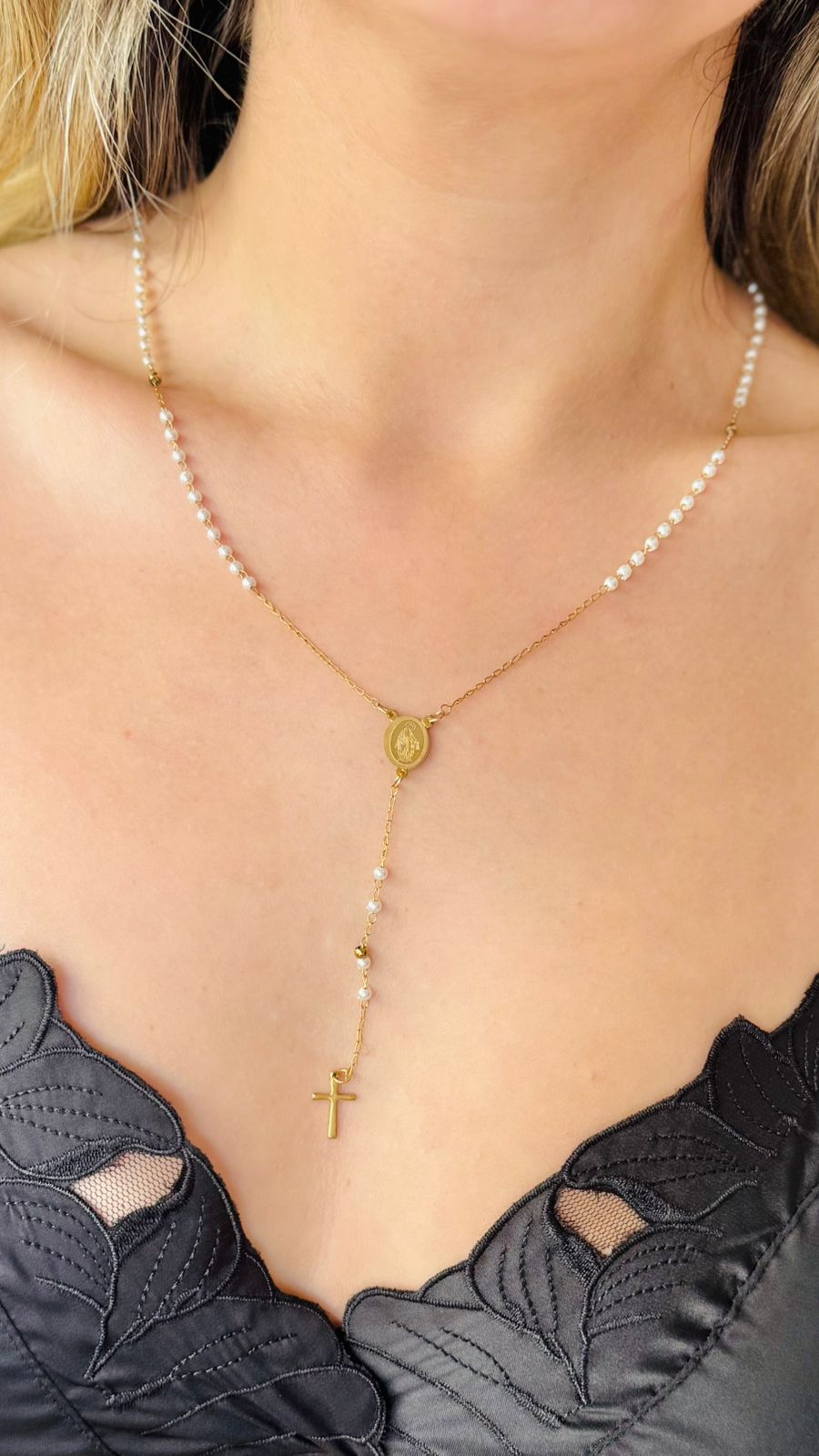 DESCRIPCION: BELLO COLLAR DE ACERO INOXIDABLE CON PERLAS.
