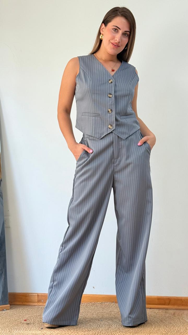 DESCRIPCION: CONJUNTO SASTRERO CON RAYAS FINAS EN COLOR BLANCO, IDEAL PARA USAR DE MANERA FORMAL Y CASUAL.