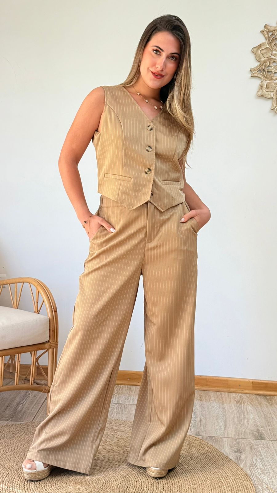 DESCRIPCION: HERMOSA GILET DE RAYAS FINAS DE CORTE AJUSTADO.