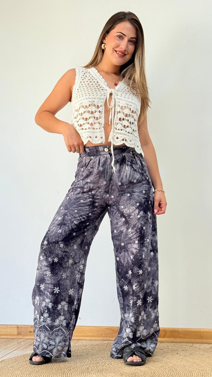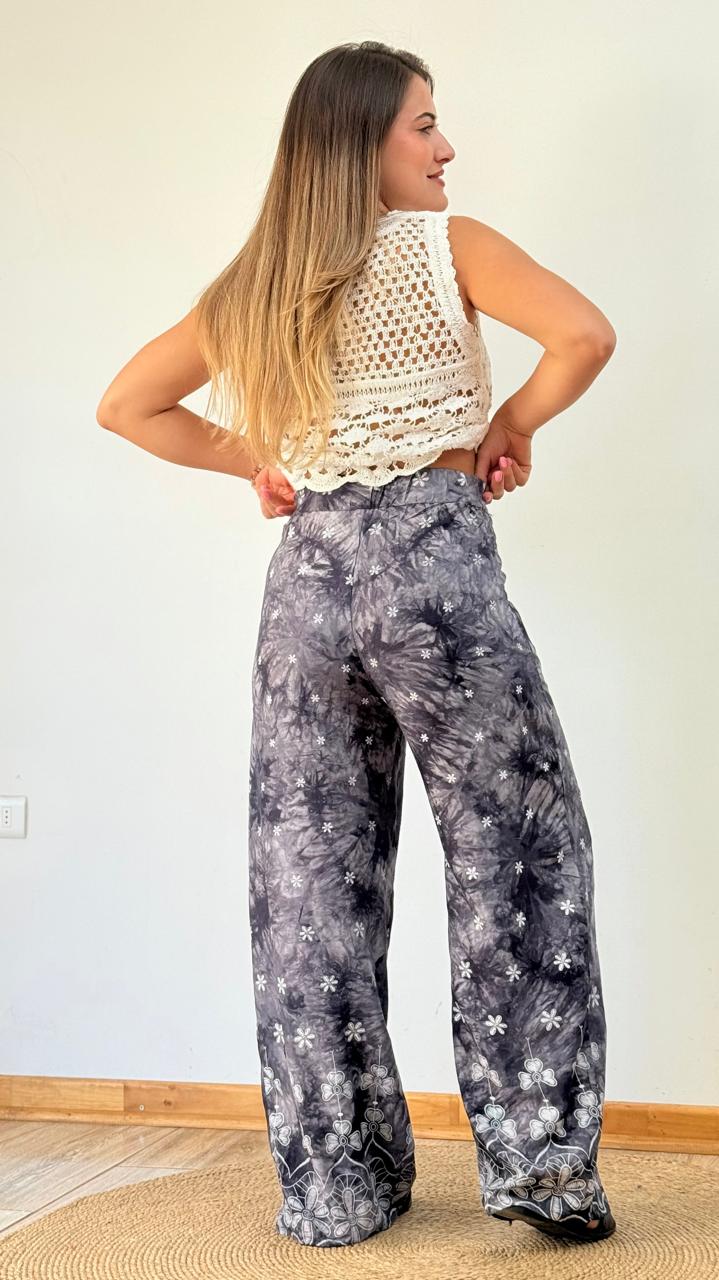 DESCRIPCION: PANTALON ESTAMPADO DE TELA LIVIANA, CORTE RECTO, CINTURA ELASTICADA CON BOTON Y CIERRE, TIENE BOLSILLOS LATERALES. DOS TIPOS DE DISEÑO.