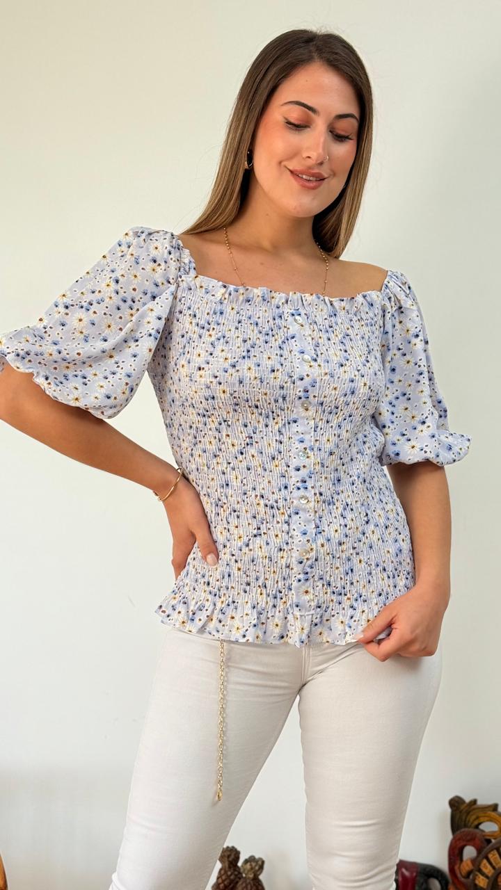 DESCRIPCIÓN: HERMOSA POLERA CRUZADA DE TELA TIPO PANAL, CON LAZO AJUSTABLE.