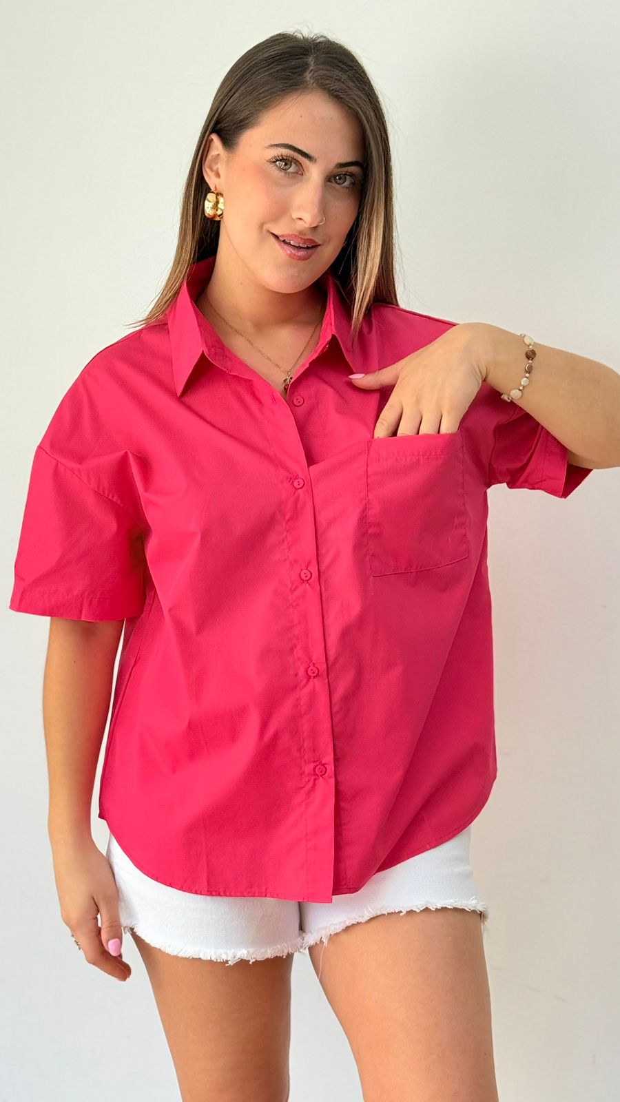 DESCRIPCION Básico elegante para todo el año. Blusa de manga corta con cuello protagonista tipo camisero y botones al frente. Confeccionada en tela suave y liviana, de calce relajado que no marca y cae bonito. Perfecta para combinar con jeans, sastreros o faldas y armar looks de trabajo o casuales.