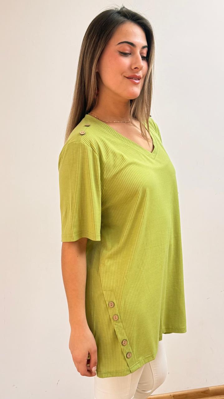 DESCRIPCION: POLERA OVERSIZE DE TELA TIPO ACANALADA, CUELLO ESCOTE V