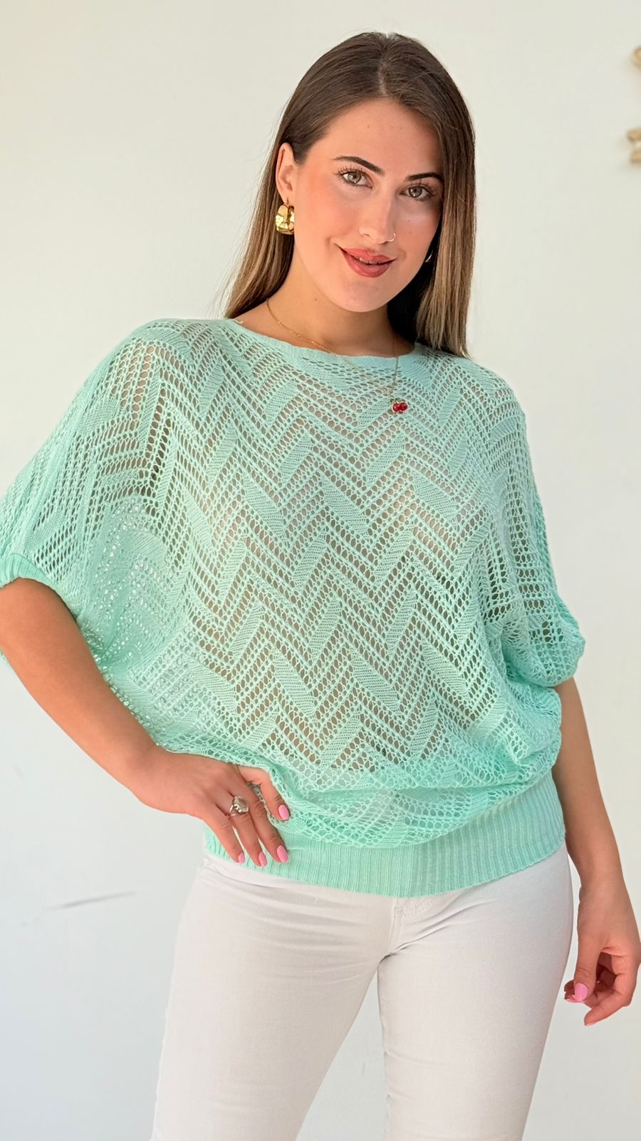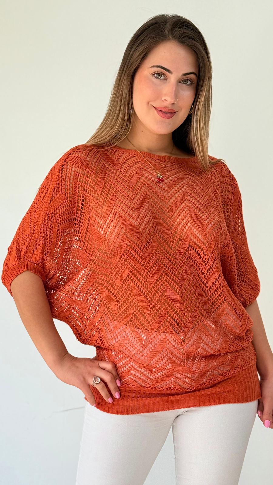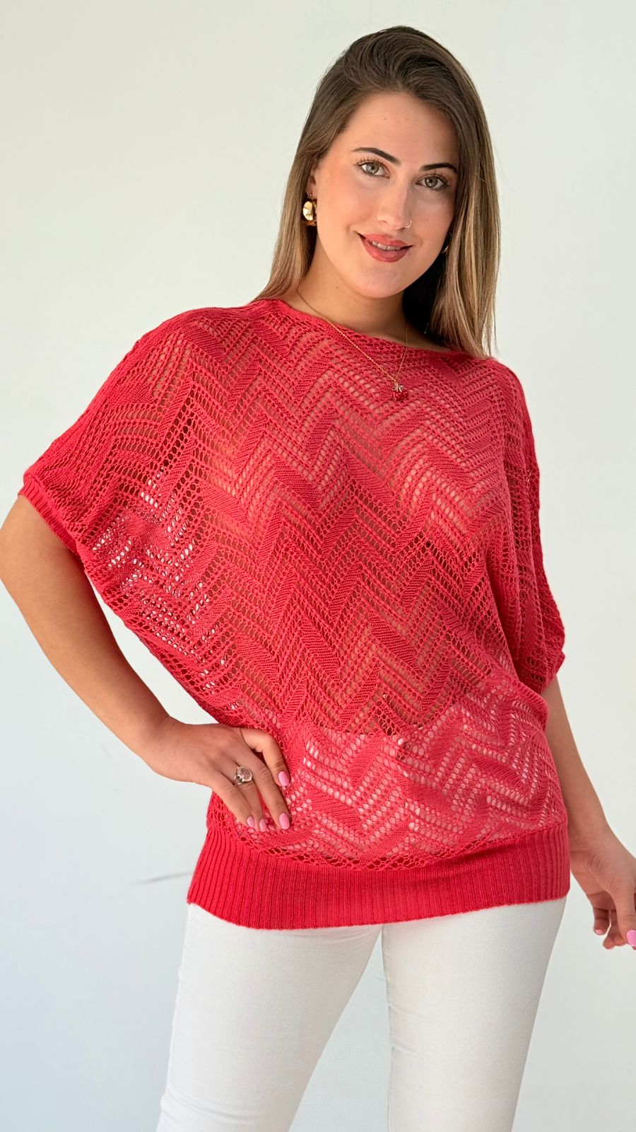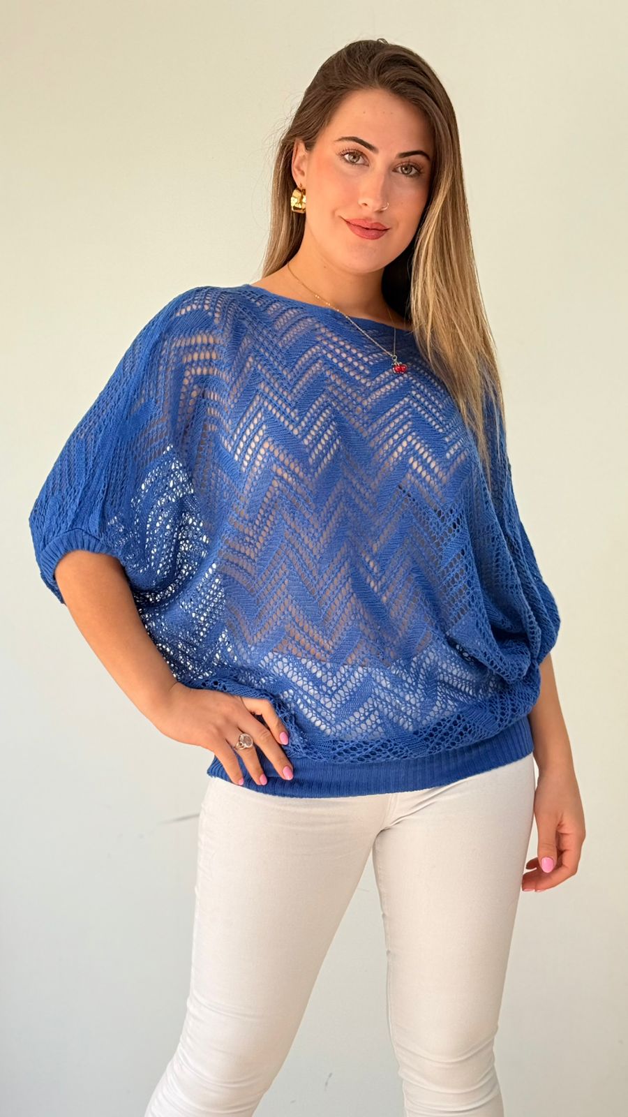 DESCRIPCION: POLERA TIPO TEJIDA DE CORTE MURCIELAGO.