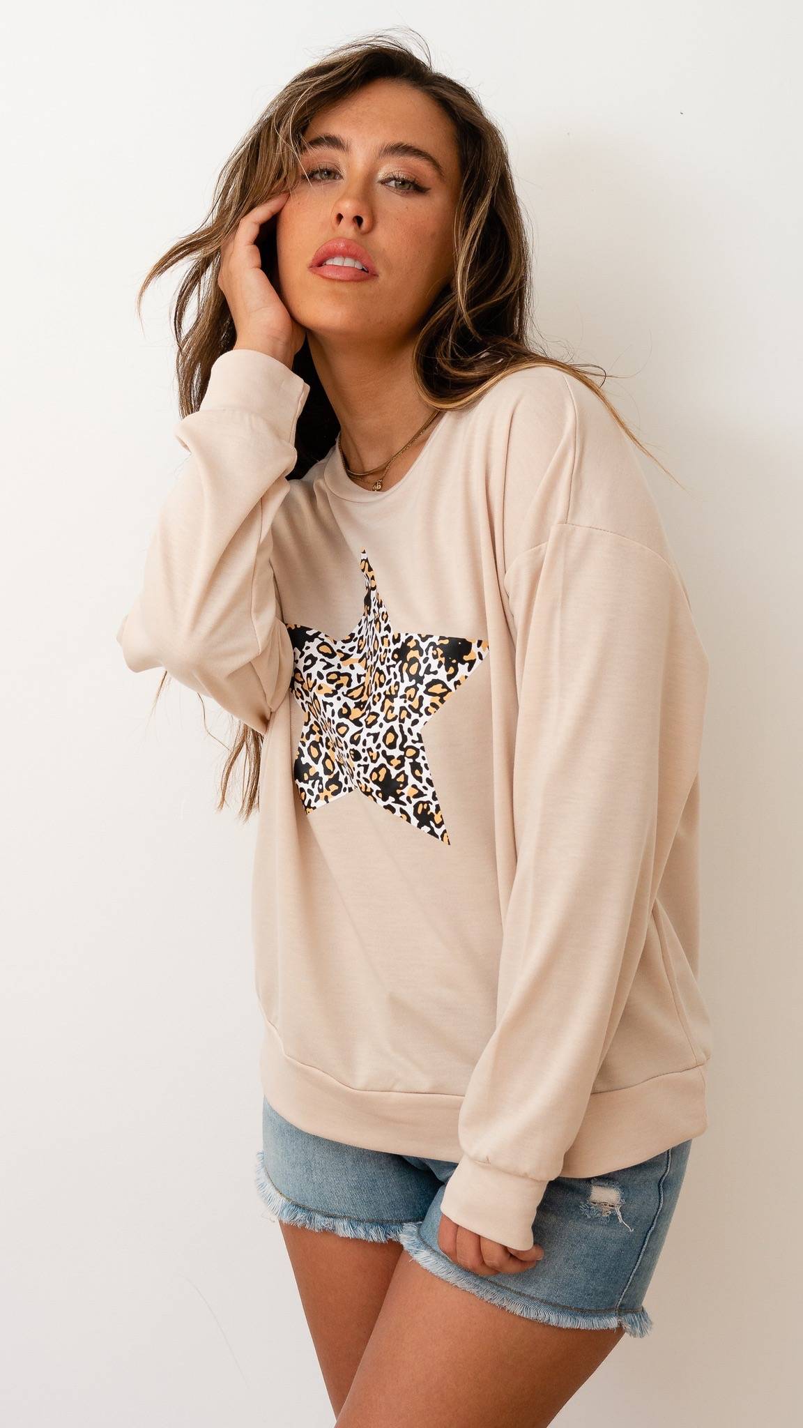 DESCRIPCIÓN: POLERON BASICO DE CUELLO REDONDO CON ESTAMPADO ESTRELLA.