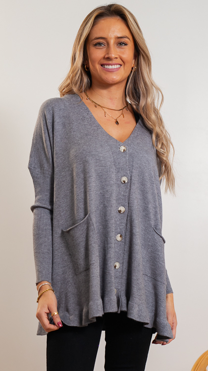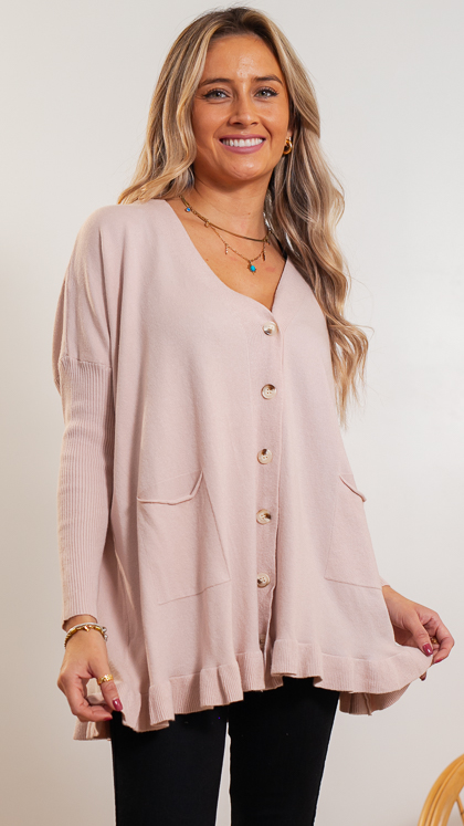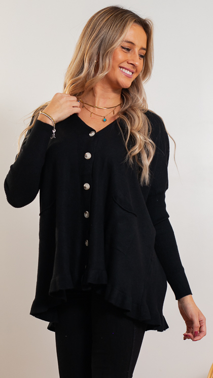 DESCRIPCIÓN: LINDO SUETER DE TELA SPANDEX CON DETALLE DE VUELOS, TIENE BOTONES Y BOLSILLOS.