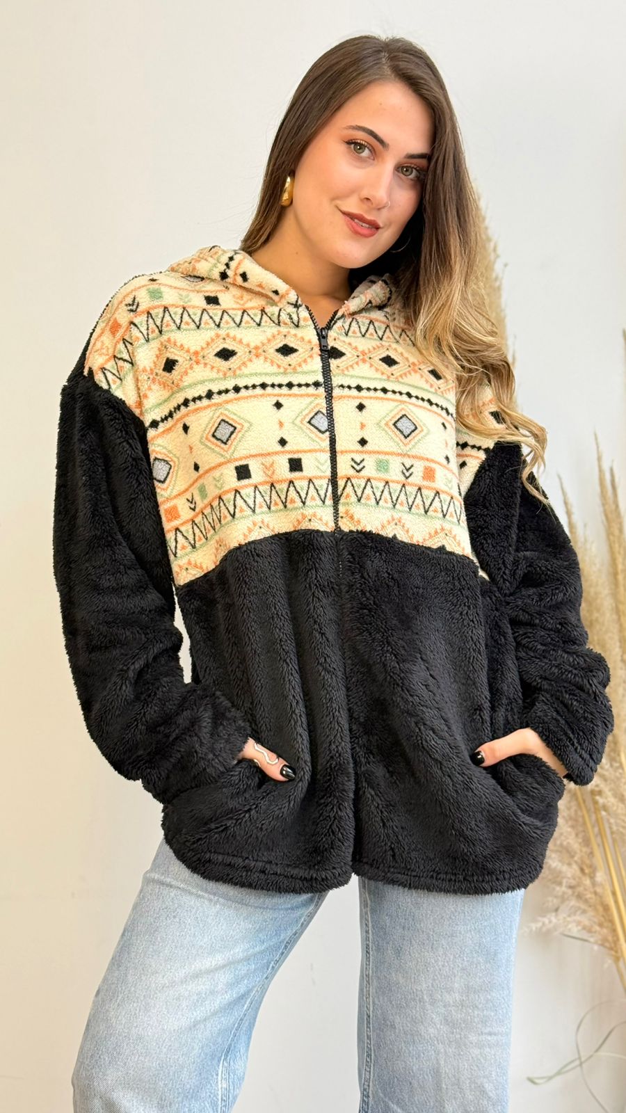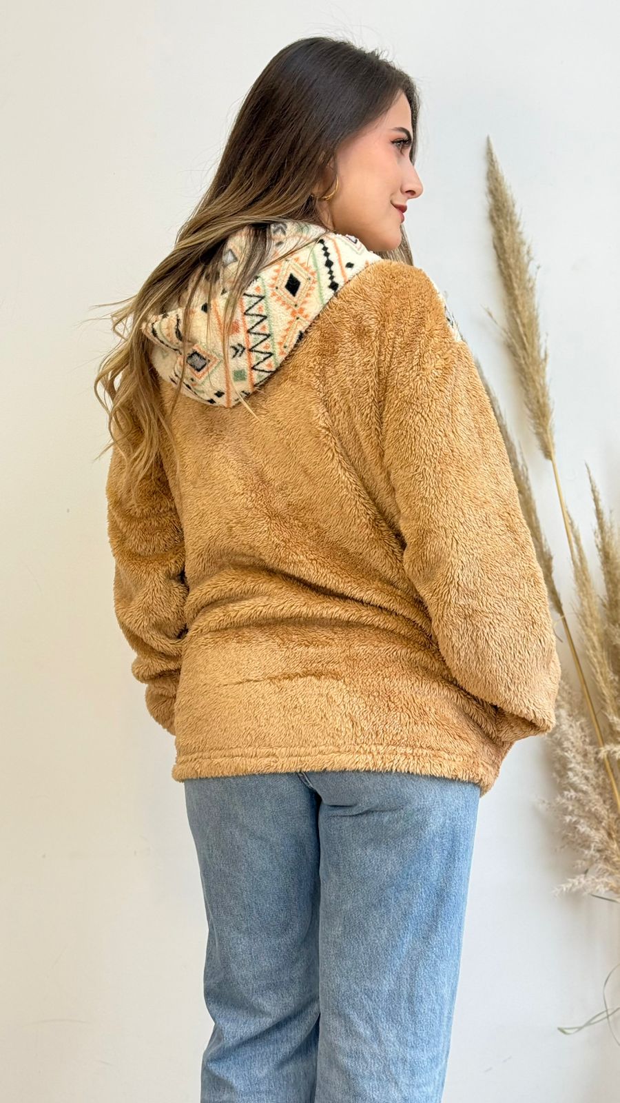 Chaqueta Polar con Capucha Diseño Étnico 🧸✨