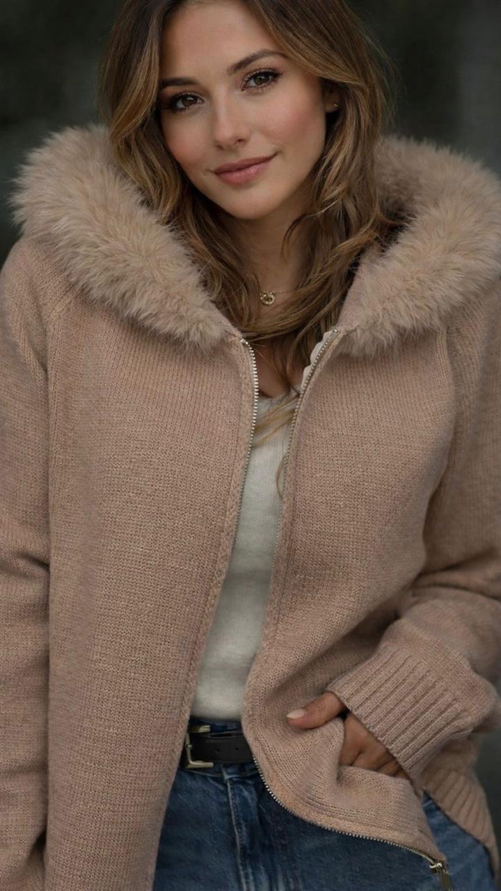 Chaleco con cuello peludo y cierre , ideal para los días más fríos.