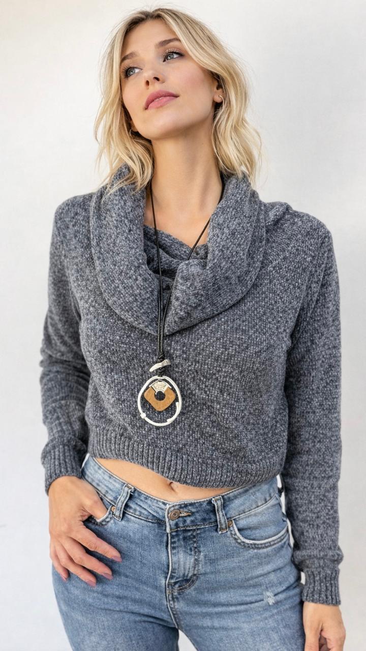DESCRIPCIÓN: SUETER TIPO CROP CON CUELLO CAIDO Y TELA TIPO CHENILLE