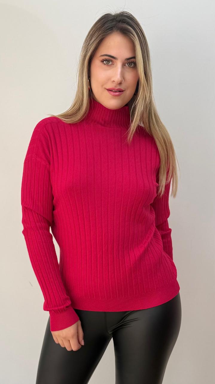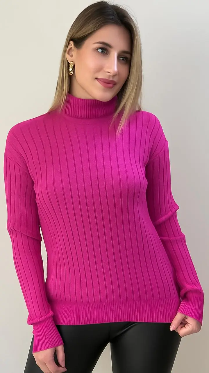 Sueter de tela spandex con diseño acanalado con cuello, ideal para los días más fríos.