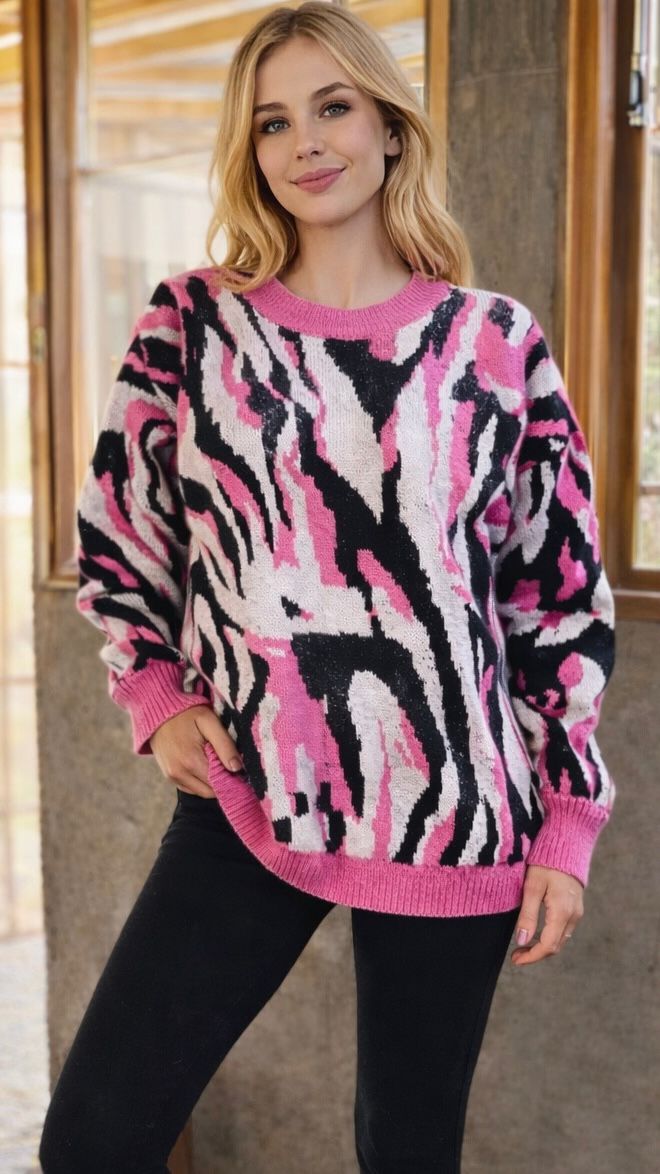 DESCRIPCIÓN: SUETER CON DISEÑO PRINT DE CUELLO REDONDO, OVERSIZE.