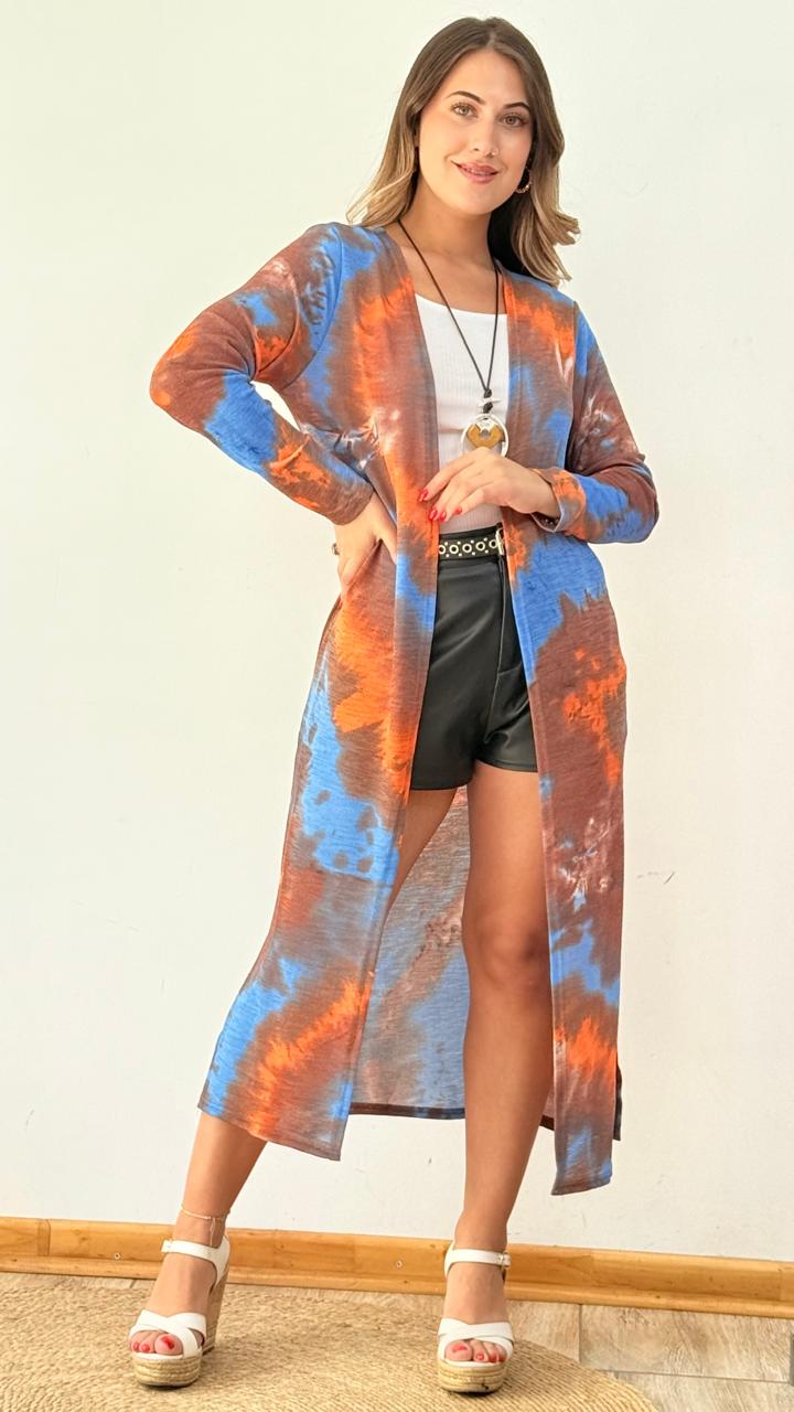 DESCRIPCION: HERMOSO TAPADO LARGO CON DISEÑO TIE DYE, TELA ELASTICADA.