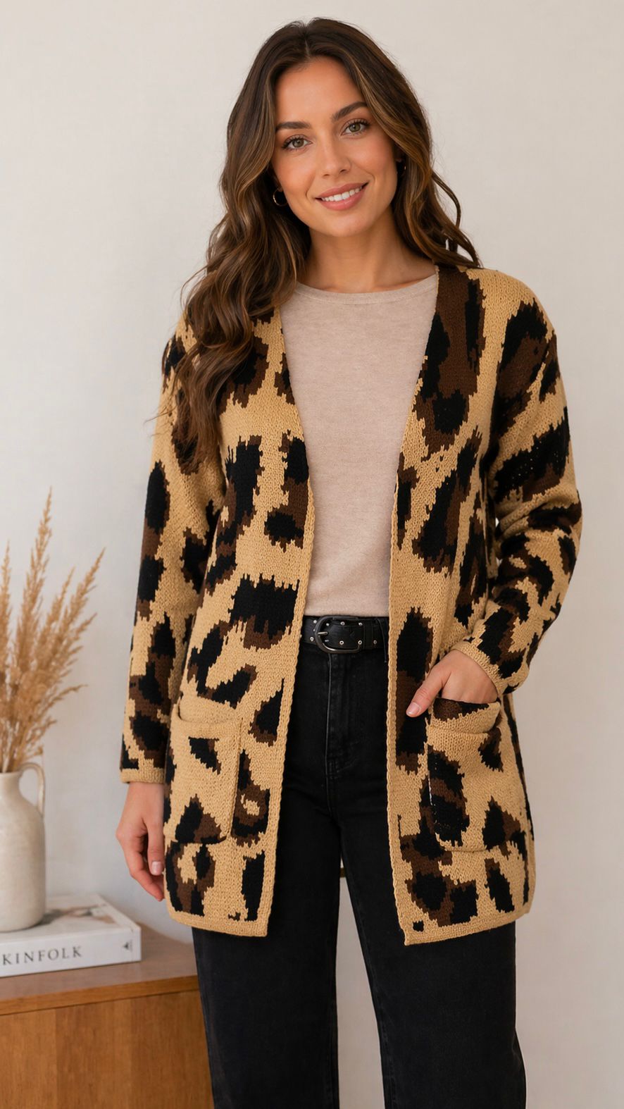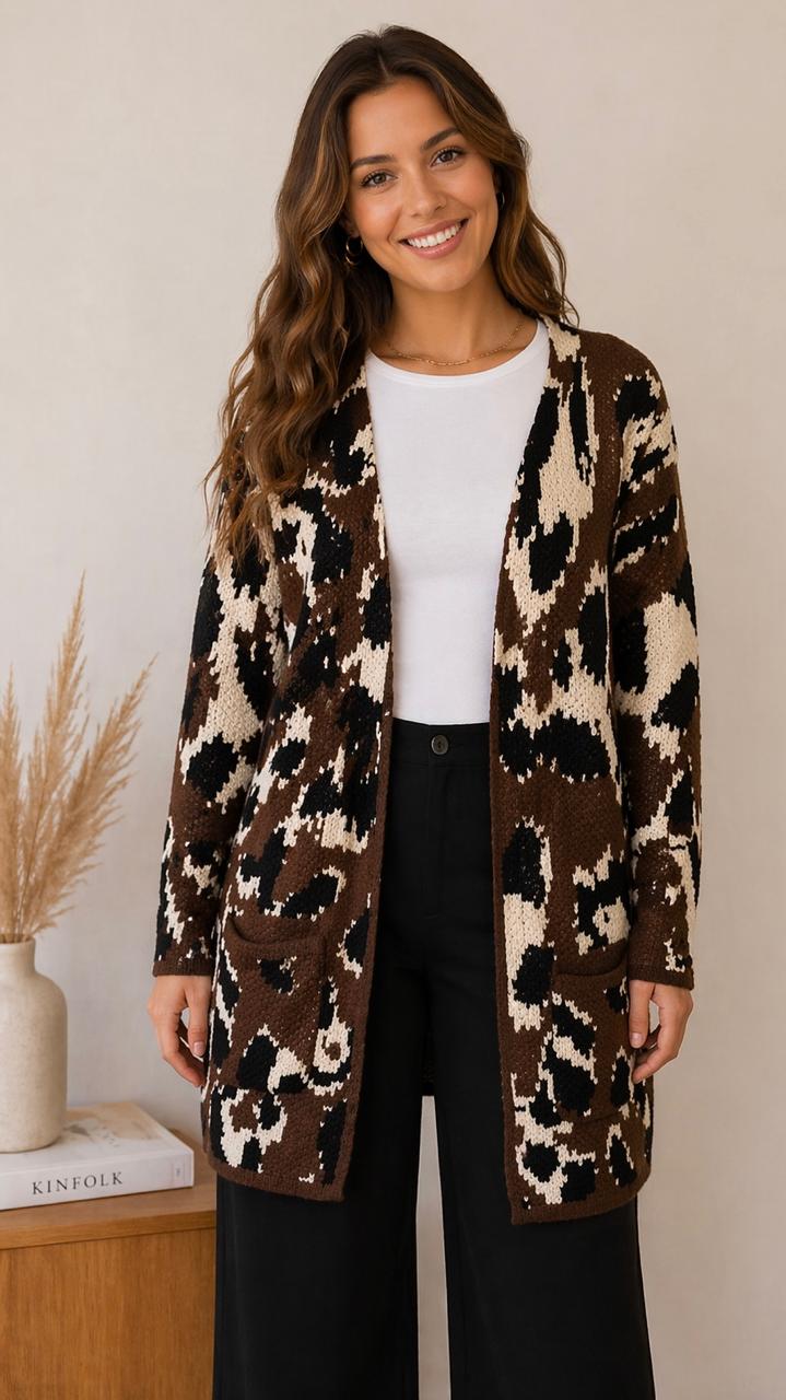 DESCRIPCION: TAPADO DE TELA TIPO LANA DISEÑO ANIMAL PRINT, TIENE BOLSILLOS.