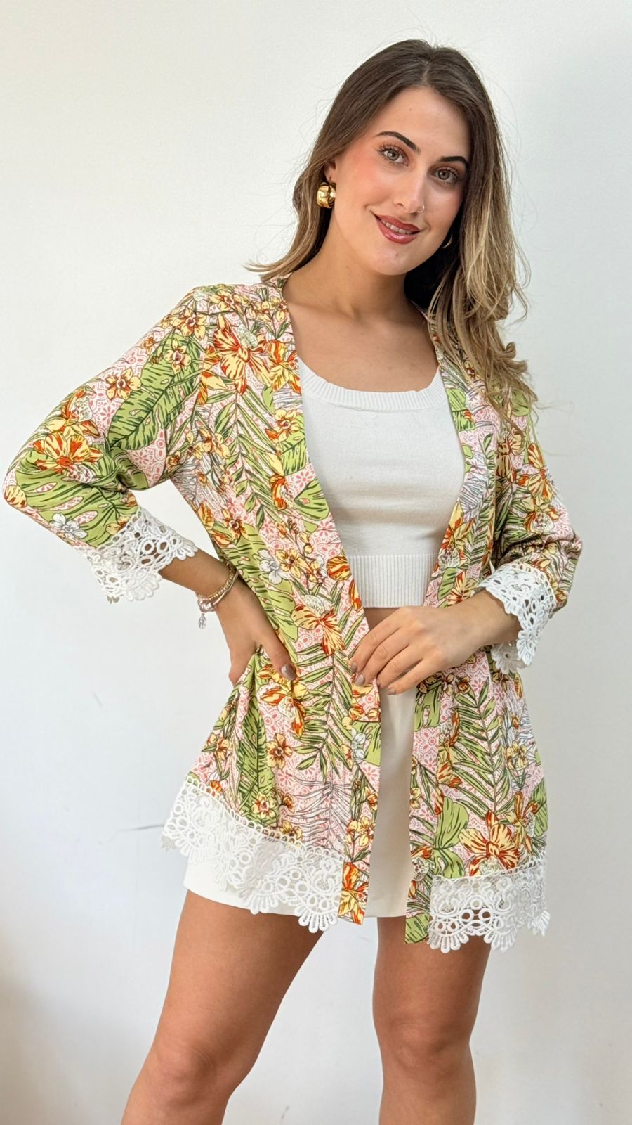 DESCRIPCION: HERMOSO TAPADO DE VERANO CON DISEÑO FLORES Y DETALLES DE ENCAJE.