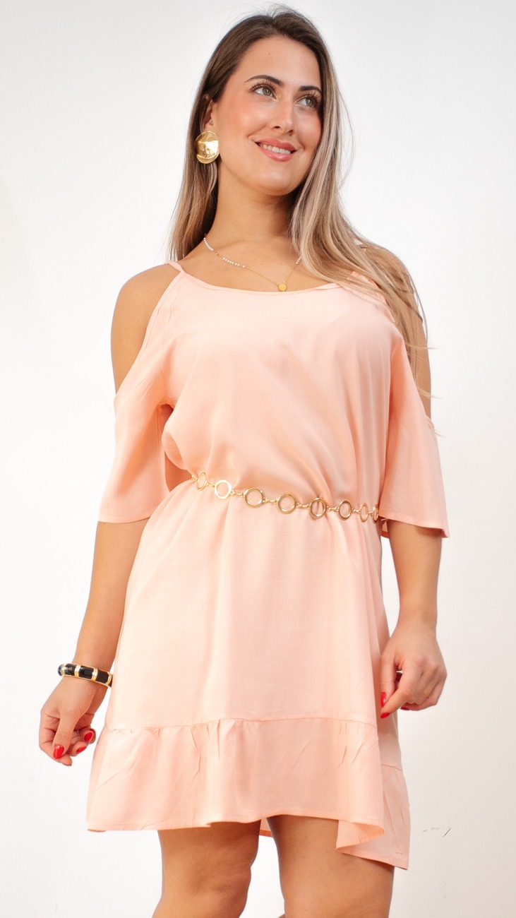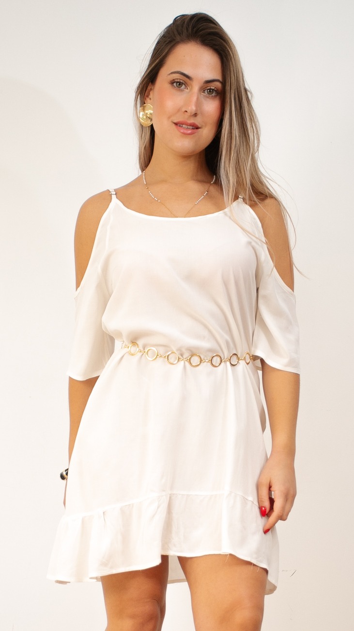 DESCRIPCION: LINDO MINI VESTIDO CON MANGA CAIDA Y DETALLES COLGANTES DE MOSTACILLA EN ESPALDA.