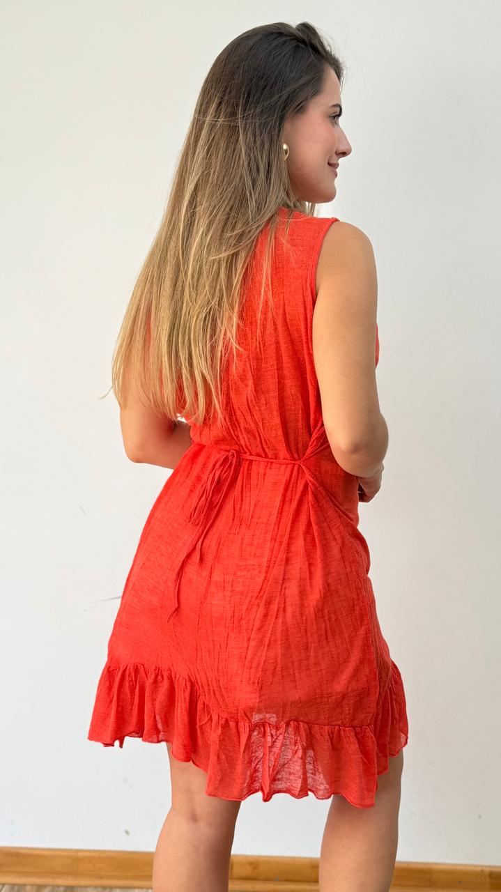DESCRIPCION: VESTIDO DE TELA LIVIANA TIPO GASA, CON DETALLES DE BOTONES, ENCAJES Y BORDADO.