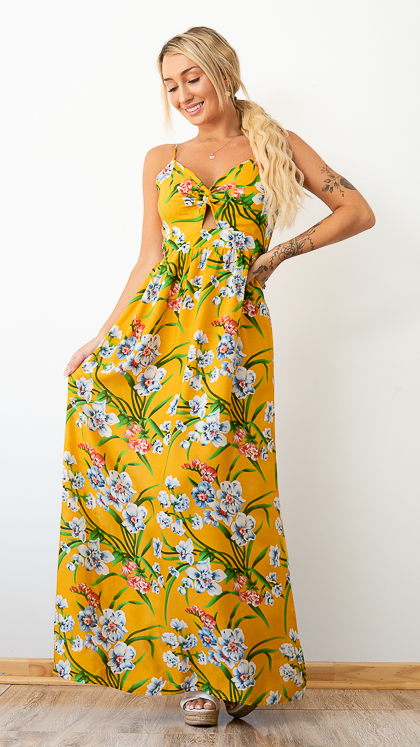 DESCRIPCION: LINDO VESTIDO FLOREADO DE TELA LIVIANA CON DETALLE NUDO EN BUSTO.