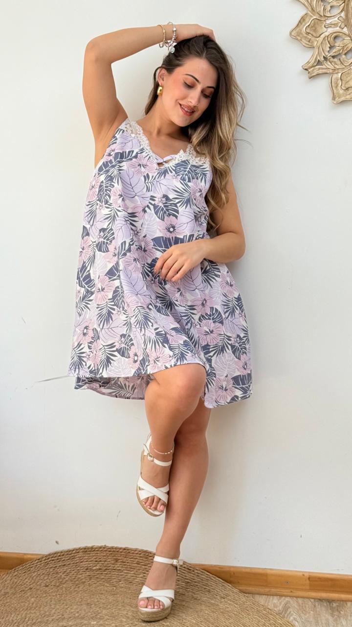 DESCRIPCION: LINDO VESTIDO VERANIEGO HOLGADO FLOREADO CON DETALLE DE ENCAJE.